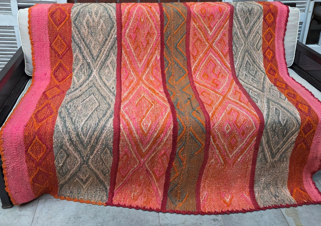 Manta o alfombra hecha a telar con lana de oveja