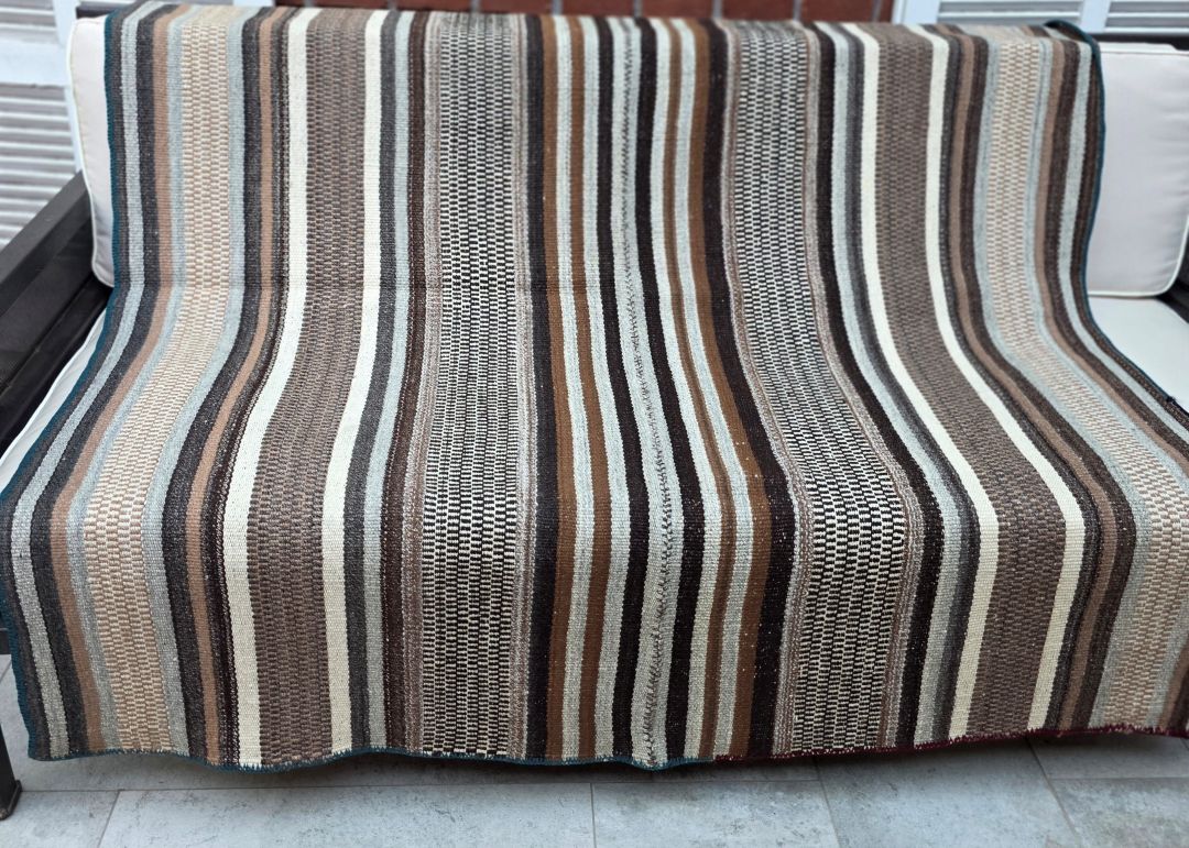 Manta o alfombra de colores naturales hecha a telar con lana de oveja y alpaca
